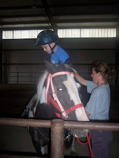 and they go through an obstacle horse. She also works with them on how to hold on/direct the horse, how to mount and dismount, etc.